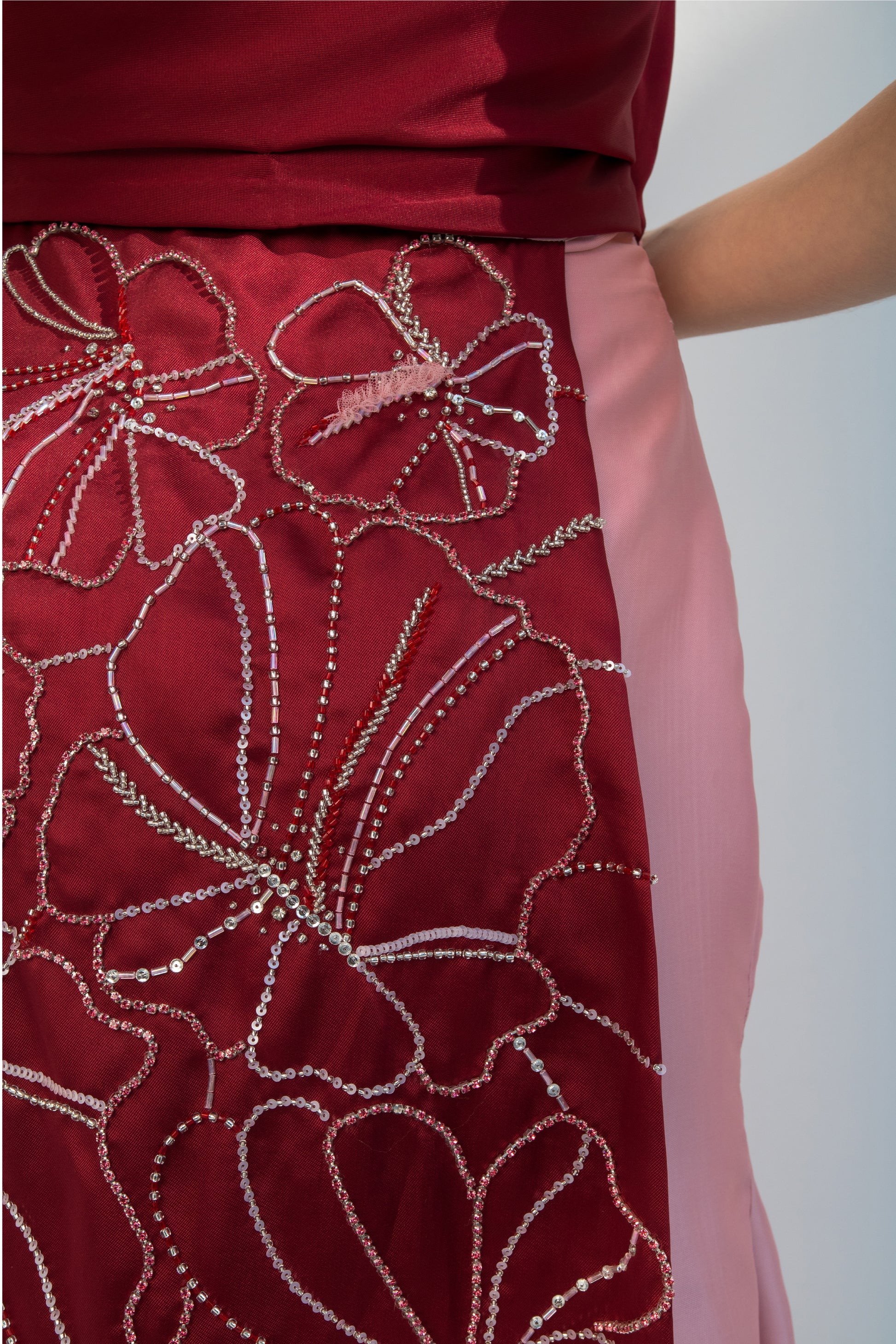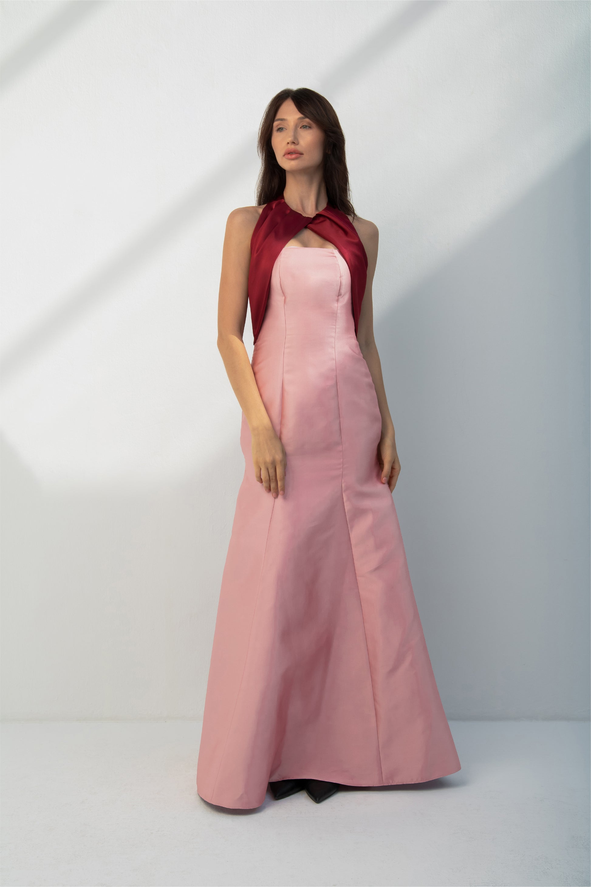 Halter-neck floral embellished fish-cut taffeta gown with open back